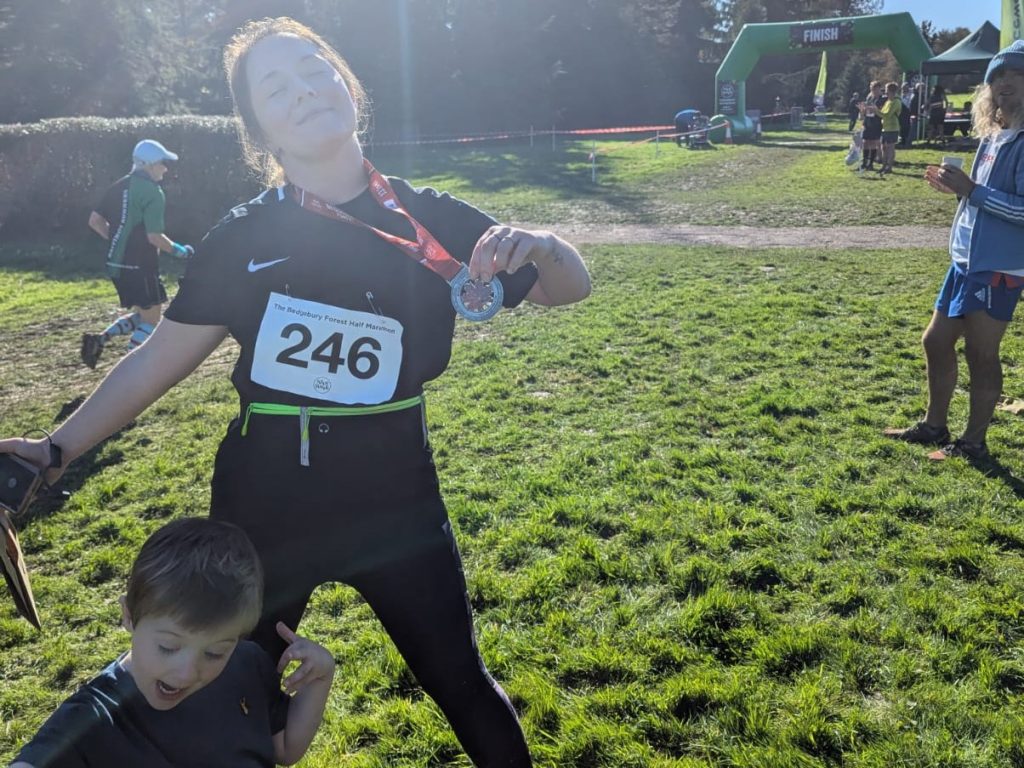 Her favourite running memories come from the Bournemouth half marathons – her very first races – which she runs alongside her boyfriend and close friends. Their tradition of pasta the night before and frozen yoghurt after the race has become a special yearly ritual.